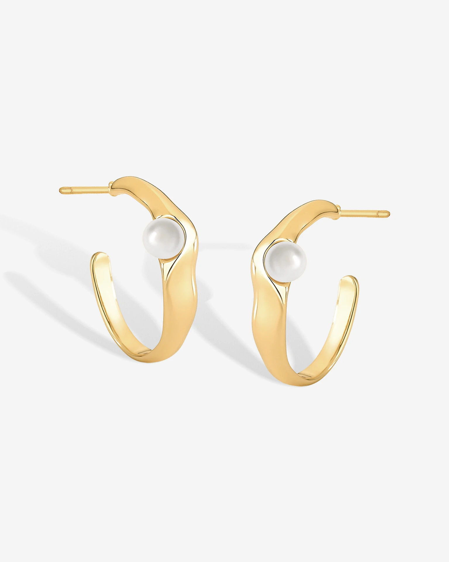 Brinco de design elegante combinando a leveza das linhas levemente sinuosas do aro com a delicadeza da pequena pérola Shell cravada na parte lateral da semi argola, criando um contraste sutil e sofisticado que valoriza o minimalismo da peça.
