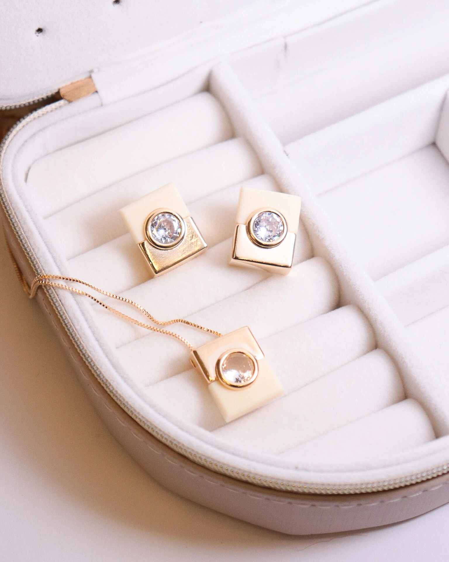 O contraste de tonalidades em blocos distintos do Colar Color Block, se harmoniza com o brilho do maravilhoso ponto de luz em zircônia cristal, criando um impacto vibrante e super contemporâneo, perfeito para looks repletos de personalidade e estilo.