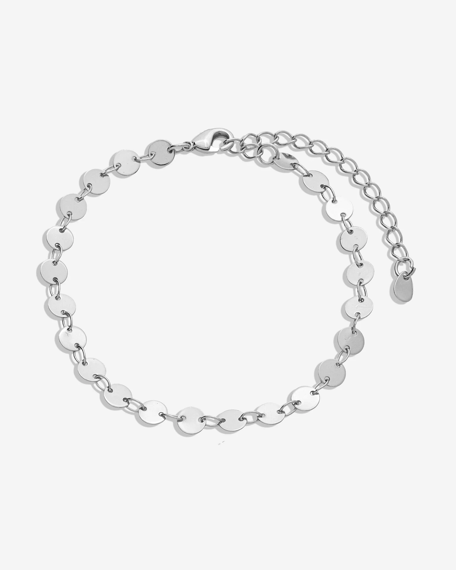 Pulseira Gipsy, em banho de ouro 18k e ródio com corrente composta por mini discos dourados , que refletem a luz com movimento.