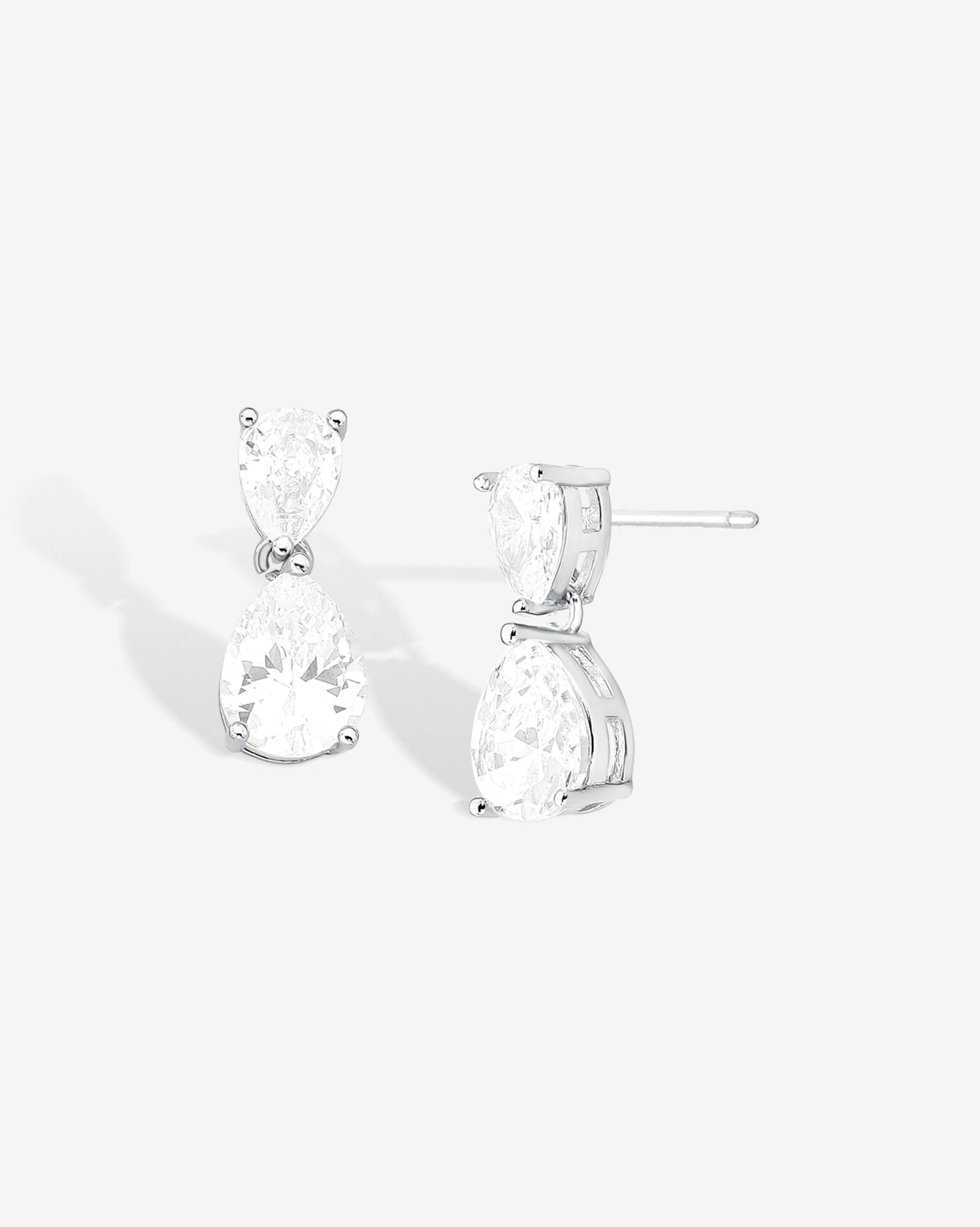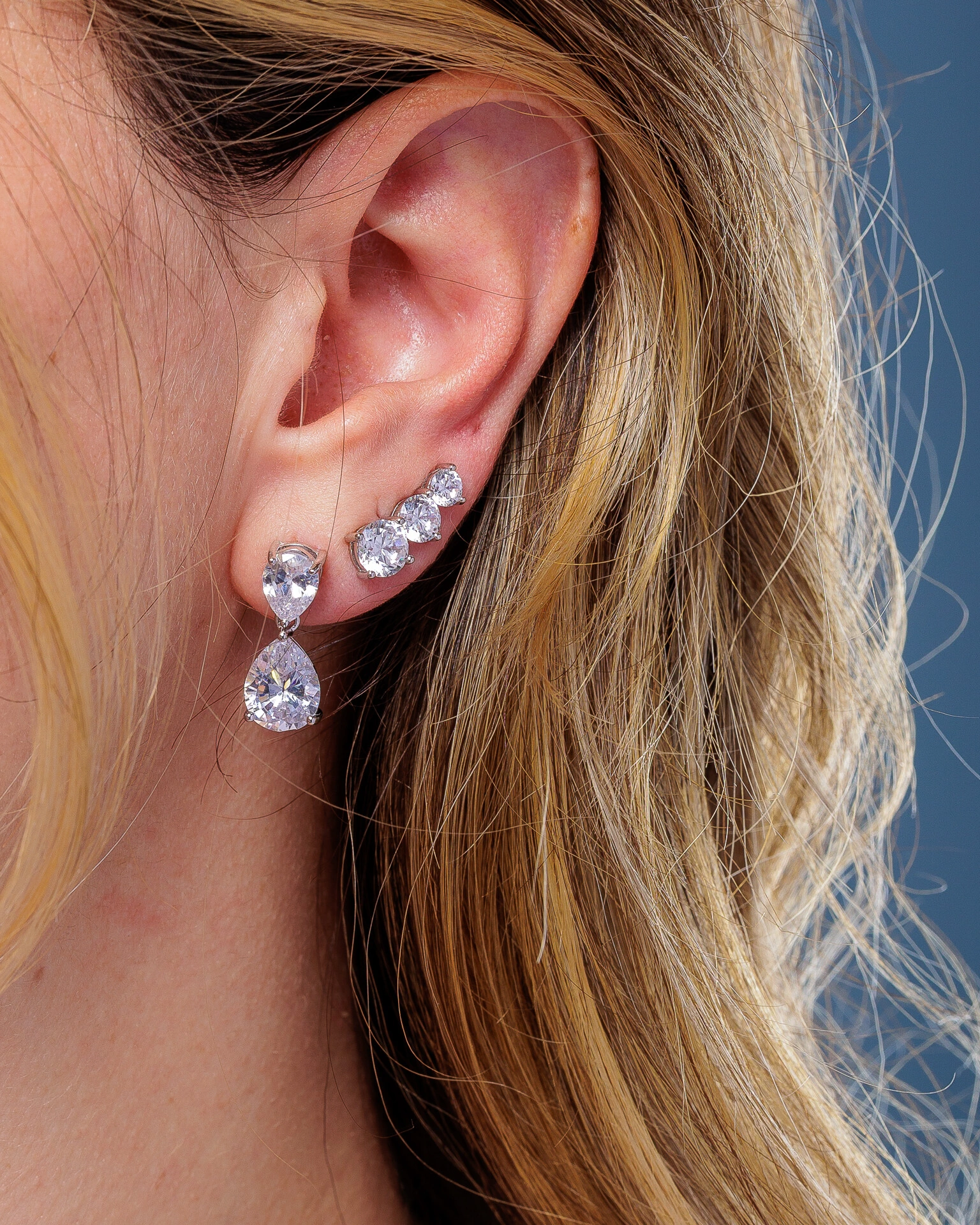 O modelo de brinco com duas gotas invertidas lapidadas em zircônias cristais é o clássico que nunca pode faltar na hora de fazer suas composições, ao impor através de suas linhas minimalistas um estilo clean e sofisticado aos seus looks.