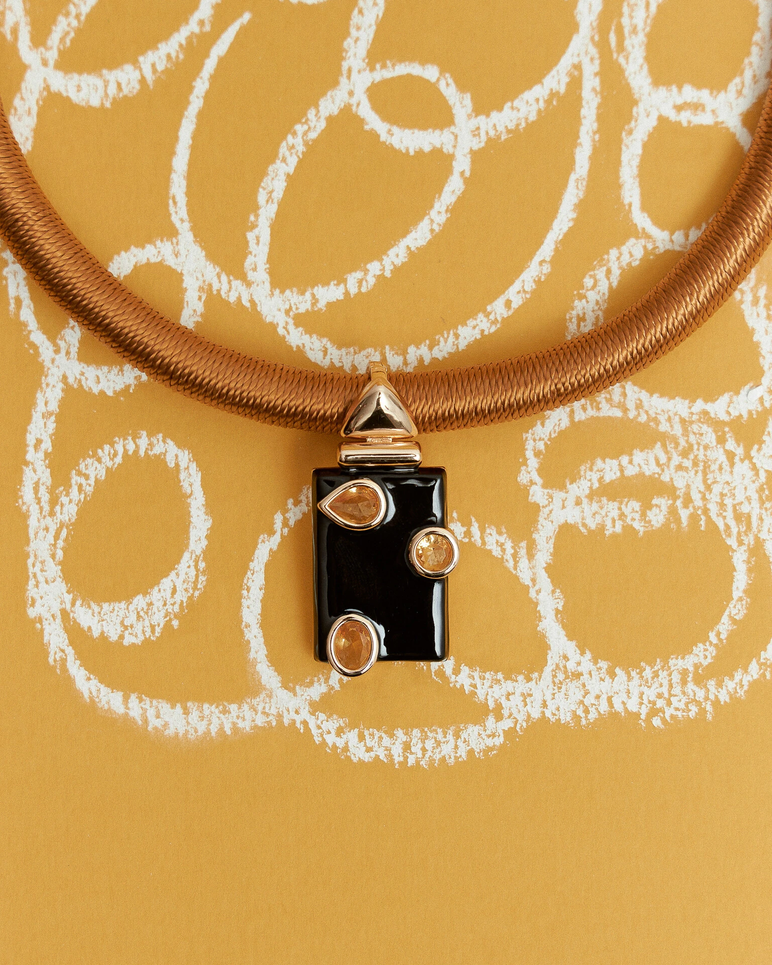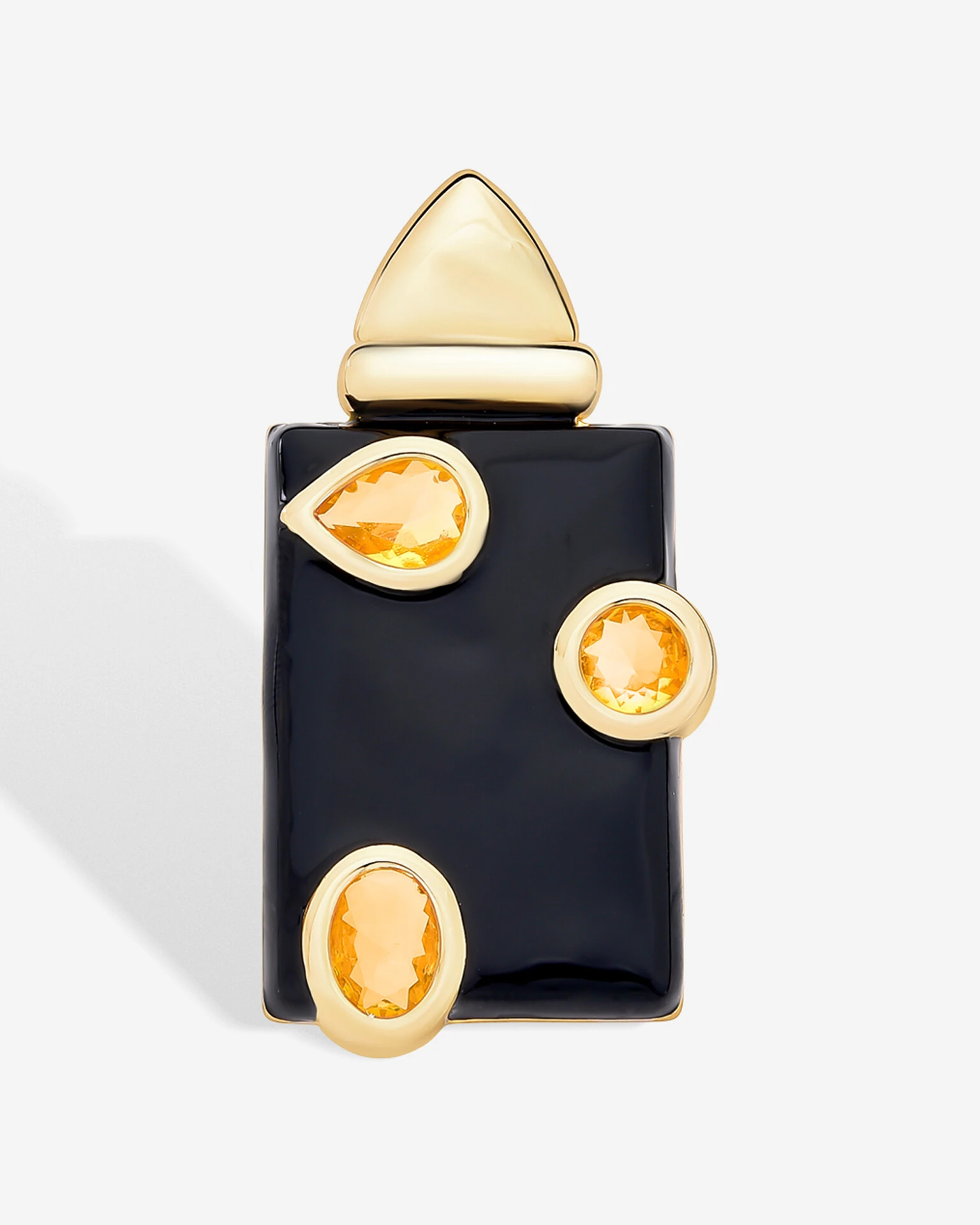 O Pingente Noir Lux, traz o design geométrico acabamento sofisticado. Com contraste entre a resina preta e o brilho das zircônias citrino cria uma joia moderna, em banho de ouro 18k perfeita para quem busca elegância com um toque artístico