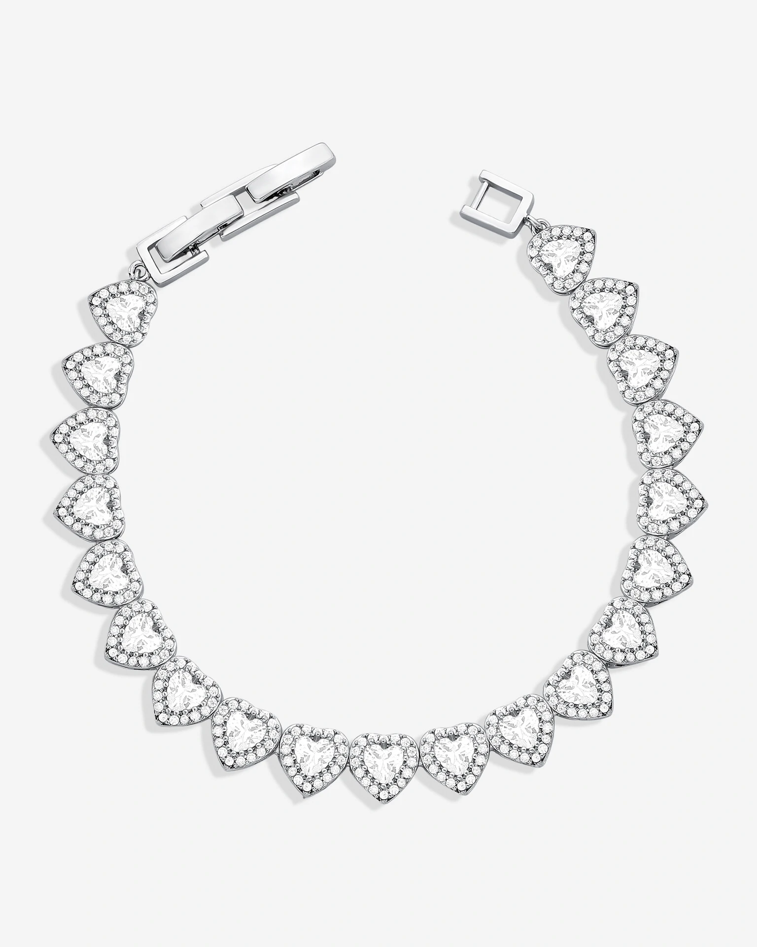 Pulseira Riviera Corações Mirella, apresenta corrente estilizada de corações em zircônias cristais. É uma peça marcante, que transmite um visual sofisticado e atemporal, perfeito para completar looks com um toque romântico e super refinado.