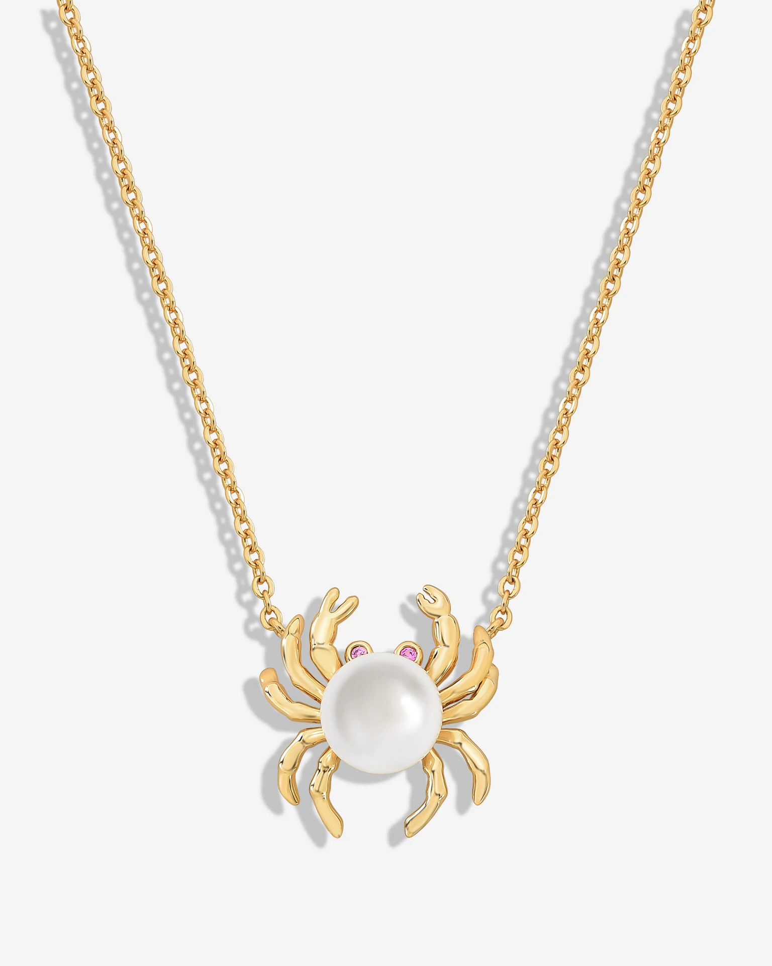 O design encantador de um pequeno siri de garras afiadas, apresenta em seu corpinho uma bela pérola shell e olhinhos em mini zircônias Pink. O maravilhoso brilho do banho de ouro 18k se une ao conjunto para trazer um toque sutil de refinamento ao Colar Siri Pink.