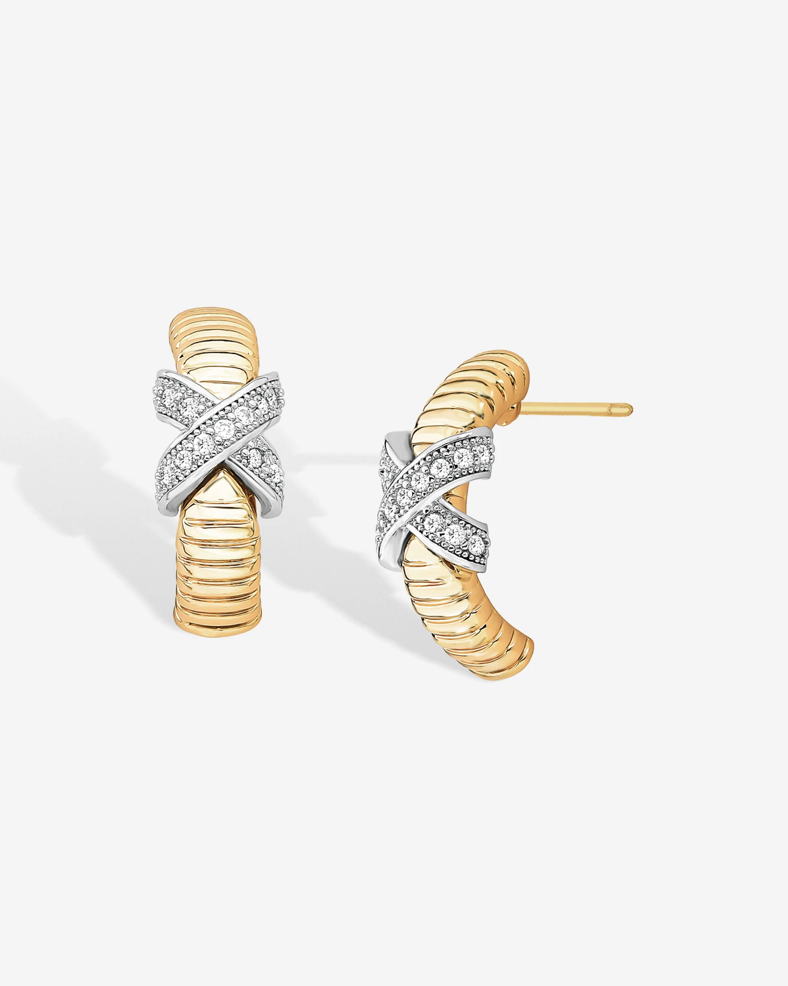 Com design de linhas suaves e textura canelada, o Brinco Coraline exibe elegância em pequenos detalhes; o delicado aro em banho de ouro 18k, contrasta vivamente com seu X em ródio branco e repletas do brilho intenso de zircônias cristais. O resultado é um modelo sutilmente divino, que proporcionará muito mais refinamento e glamour ao seu visual.