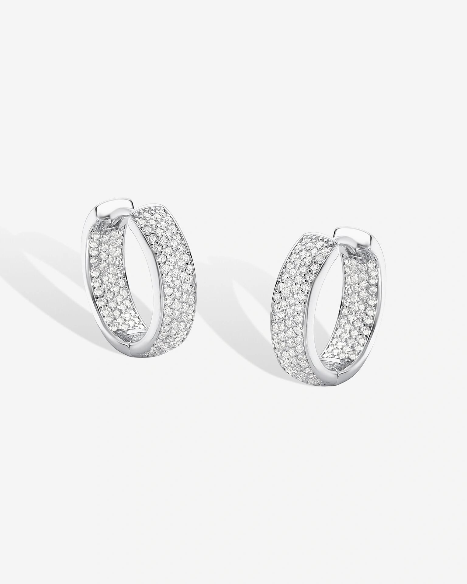 Brinco Chloe com design diferenciado em formato duplo, traz um visual contemporâneo que valoriza qualquer produção. A parte frontal é microcravejada proporcionando um efeito luminoso incrível que destaca o rosto com muita delicadeza. Combinando perfeitamente com produções elegantes, românticas ou modernas.
