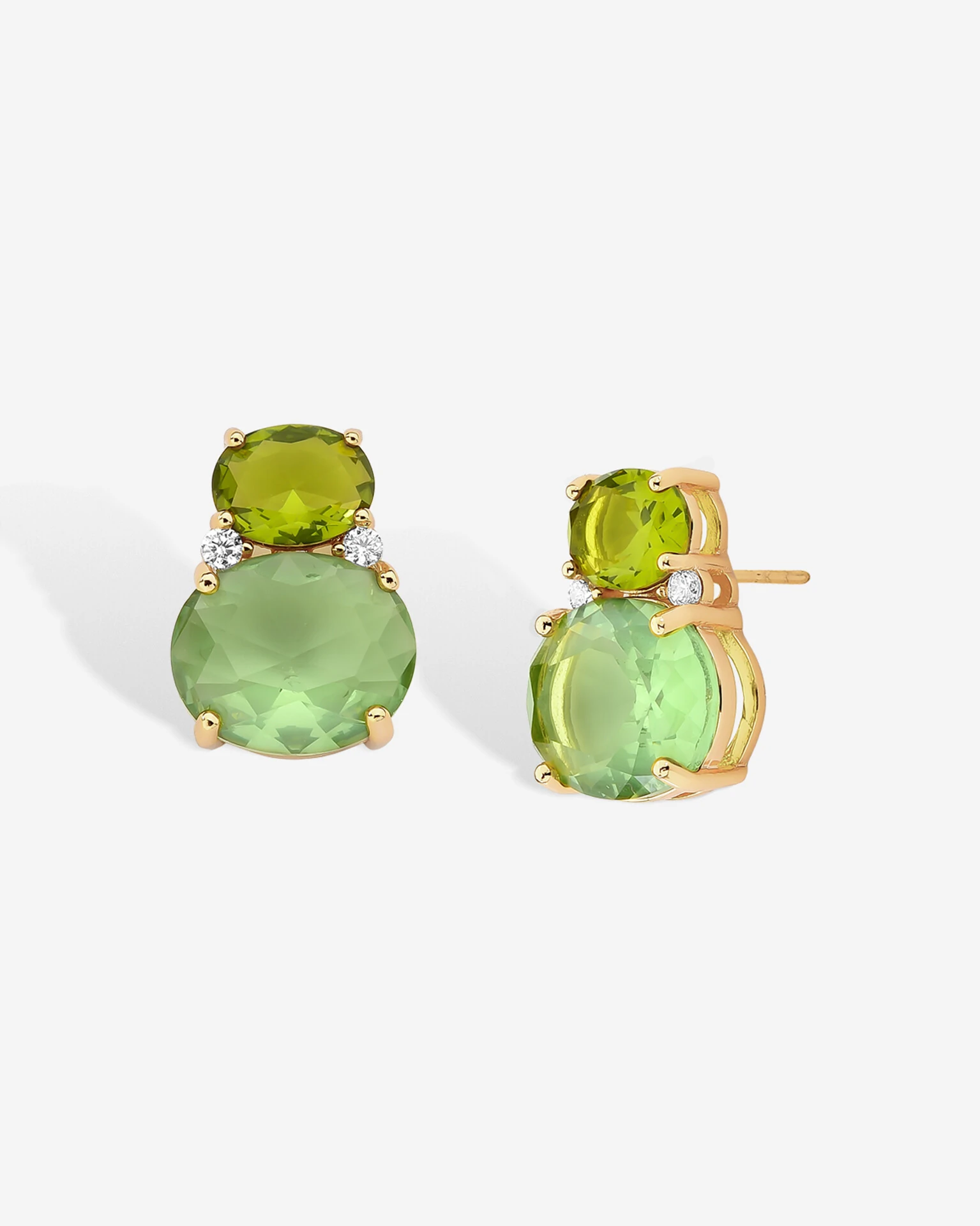 Majestoso e inspirador, o Brinco Nadine, em banho de ouro 18k, nos remete ao poder tranquilizador e elegante da natureza com suas nuances poderosas de verde, reproduzidas em uma bela composição de zircônias ovais no tom Peridoto e arrematadas por delicados pontos de luz em zircônias cristais.