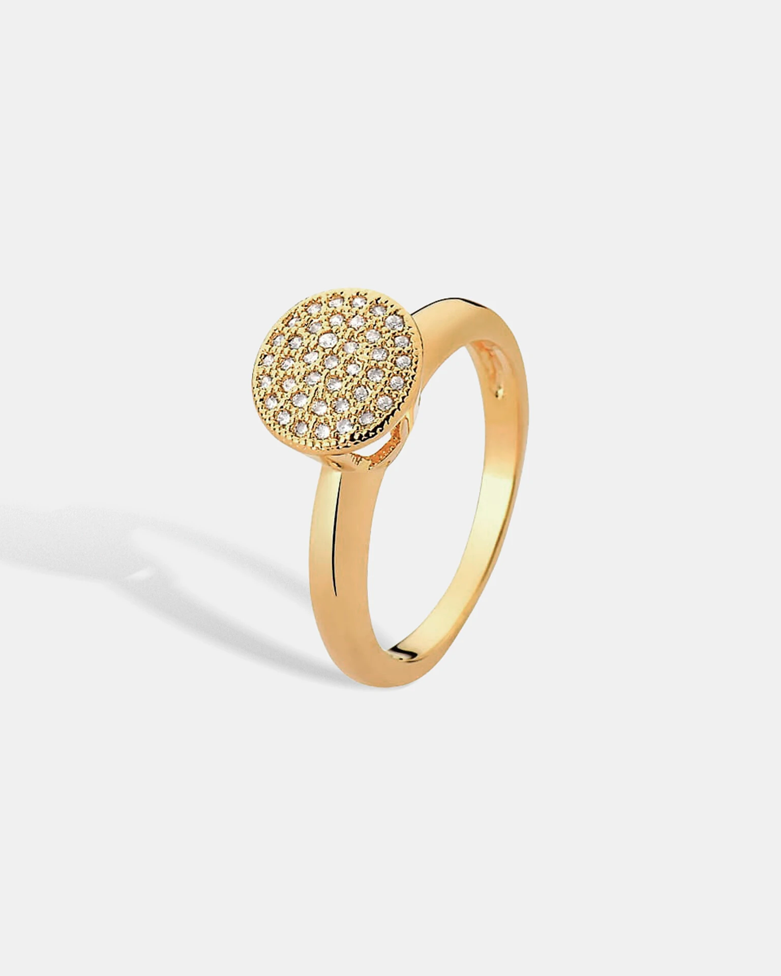 A força dos reflexos sutilmente refinados do Pavê em zircônias cristais recriam o brilho do sol, para iluminar e proporcionar muito mais beleza aos seus looks do dia a dia. Modelo de anel solitário com aro fino tubular, disponível em banho de ouro 18k.
