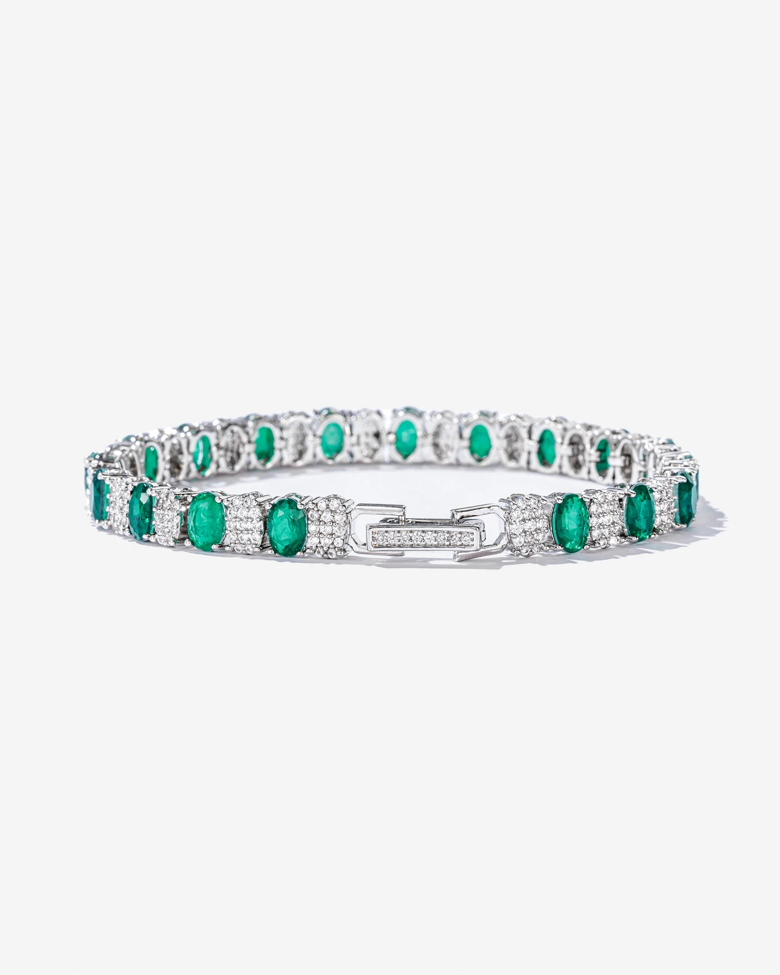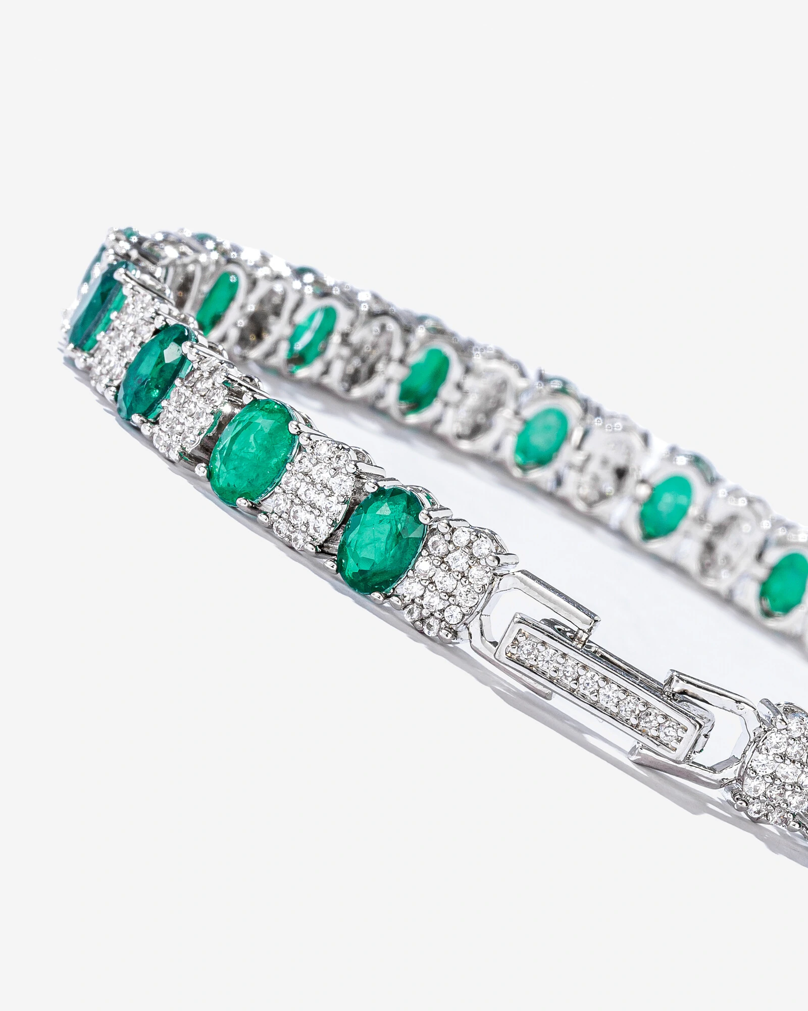 O luxo dos detalhes envolvem a Pulseira Riviera Moss, sua corrente apresenta uma composição onde impera a delicada elegância de reflexos cristalinos do maravilhoso Pavê em zircônias cristais, que se combinam com a intensidade sofisticada de zircônias ovais em tons de verde. Modelo disponível em Zircônias nos tons Esmeralda e Turmalina.