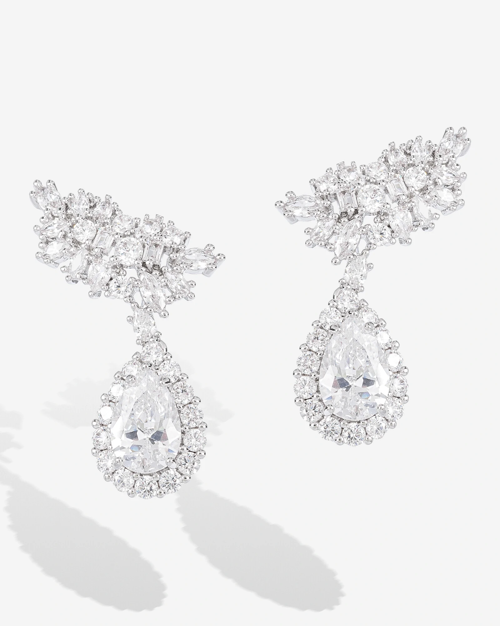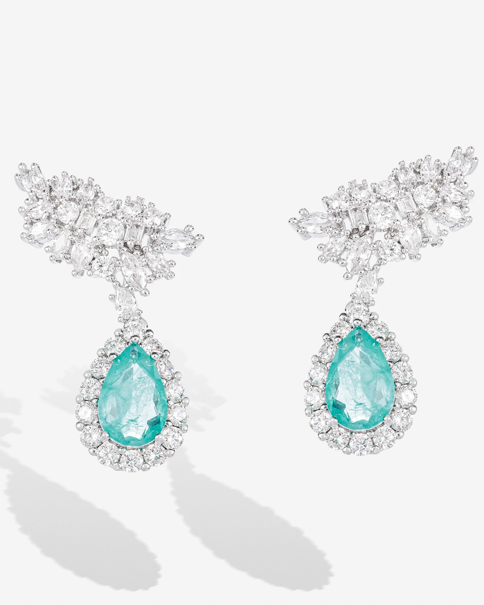 Um modelo de ear cuff que chama atenção pelo brilho intenso exibido pela maravilhosa e elegante composição de zircônias Cristais de diferentes lapidações, culminando no refinado e volumoso pingente de gota lapidado em zircônia. Um acessório criado para momentos inesquecíveis que pedem sofisticação e glamour. Disponível em banho de ródio branco. Modelo com variações nas gotas: em Cristal ou Turmalina.
