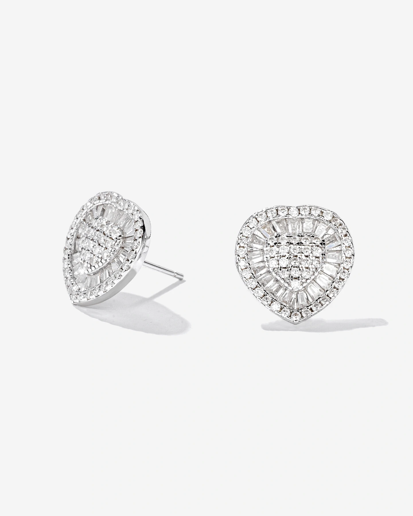 Todo um glamour em forma de coração recoberto de reflexos maravilhosos emitidos por Moissanites em diferentes lapidações, que se unem e se fundem, para eternizar o poder do amor em uma elegante joia confeccionada em prata com banho de ródio branco.