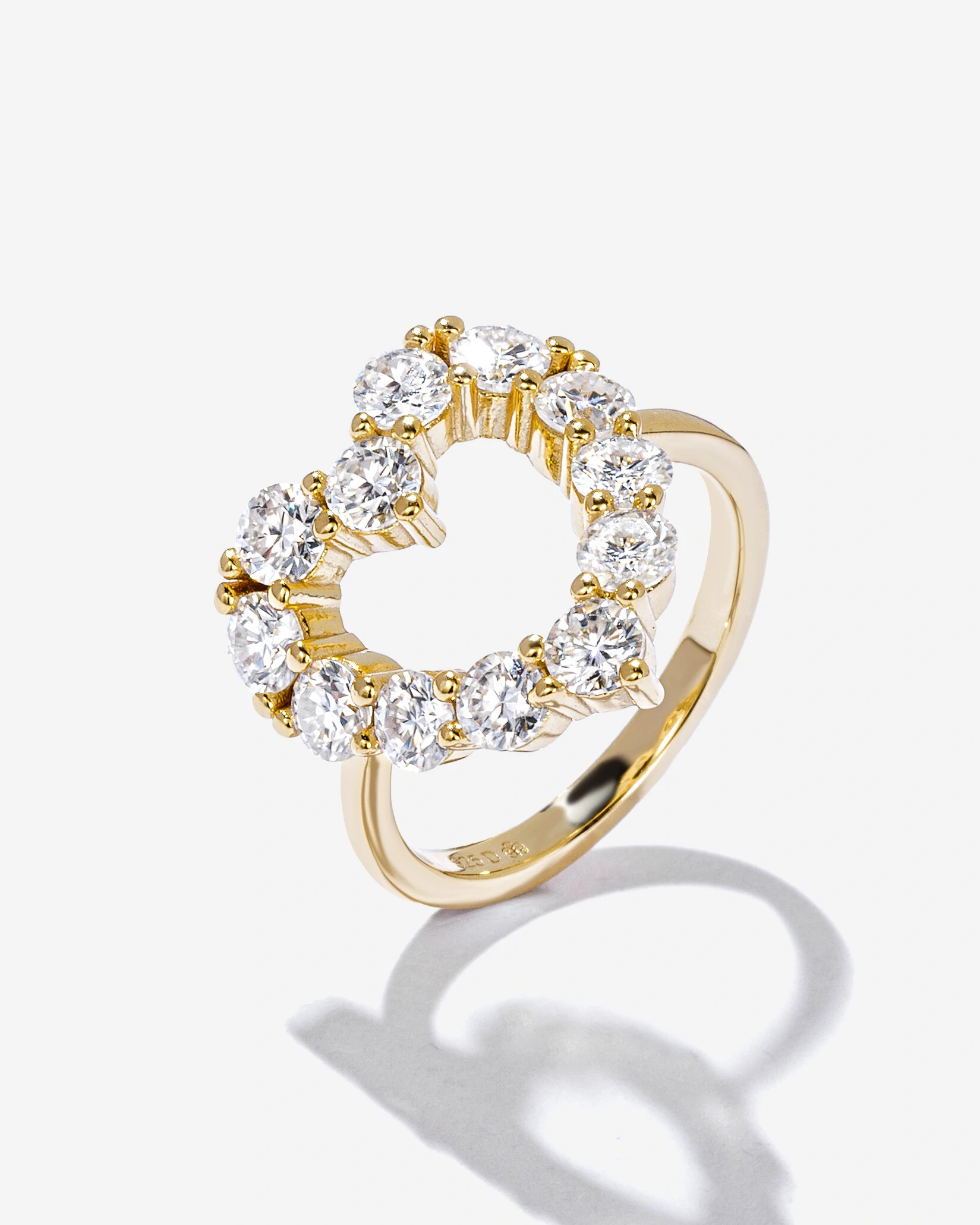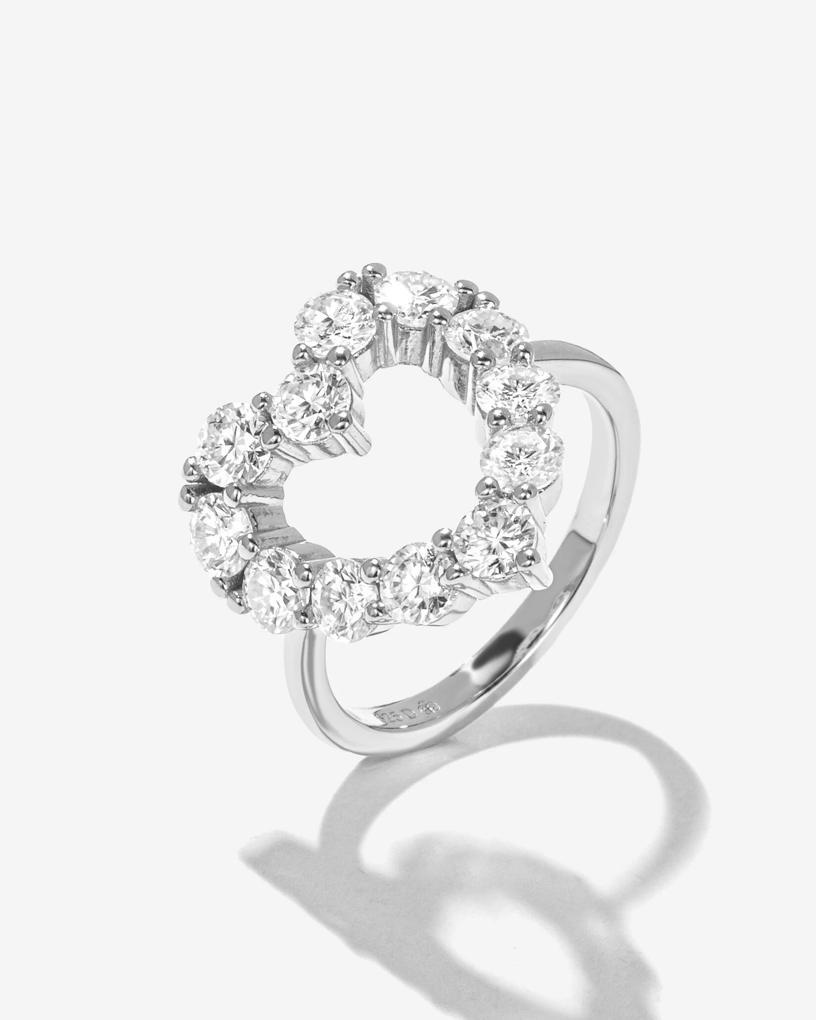 A delicadeza das linhas suaves do Anel Darcy, surpreendem pela expressividade visual do maravilhoso coração vazado, que exibe uma elegante composição de zircônias cristais. Joia em prata 925 disponível nos banhos de ouro 18k e ródio branco.