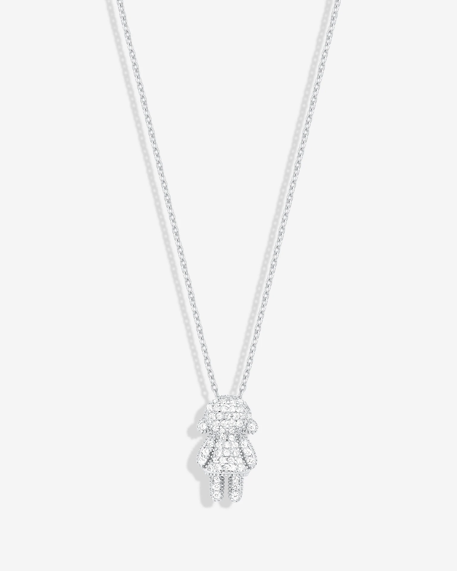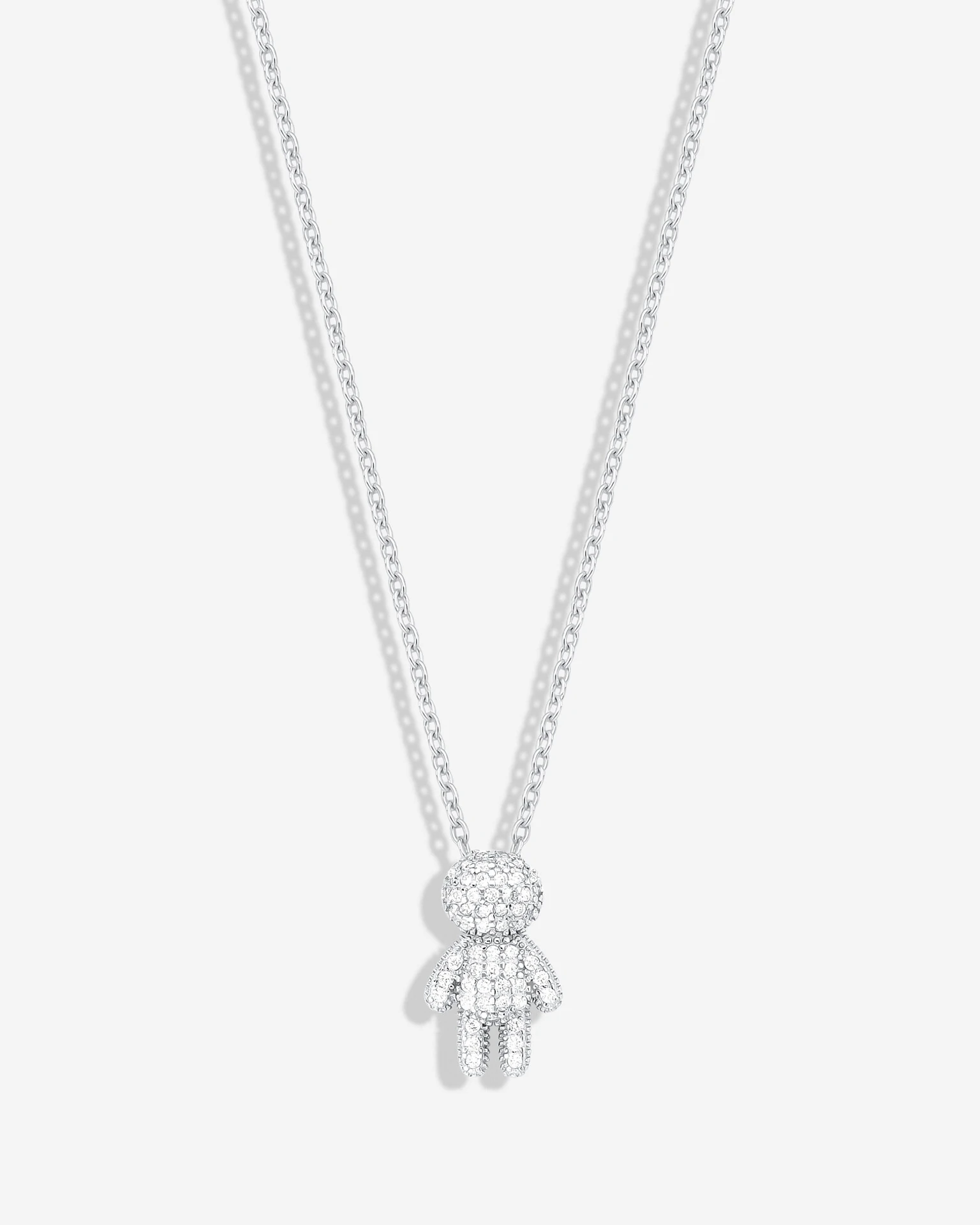 Colar de eloss em prata 925 com banho de ródio branco, possui um pingente no formato de menina e menino microcravejado com Zircônias Cristais, perfeito para eternizar o amor que há entre mãe e filhos.