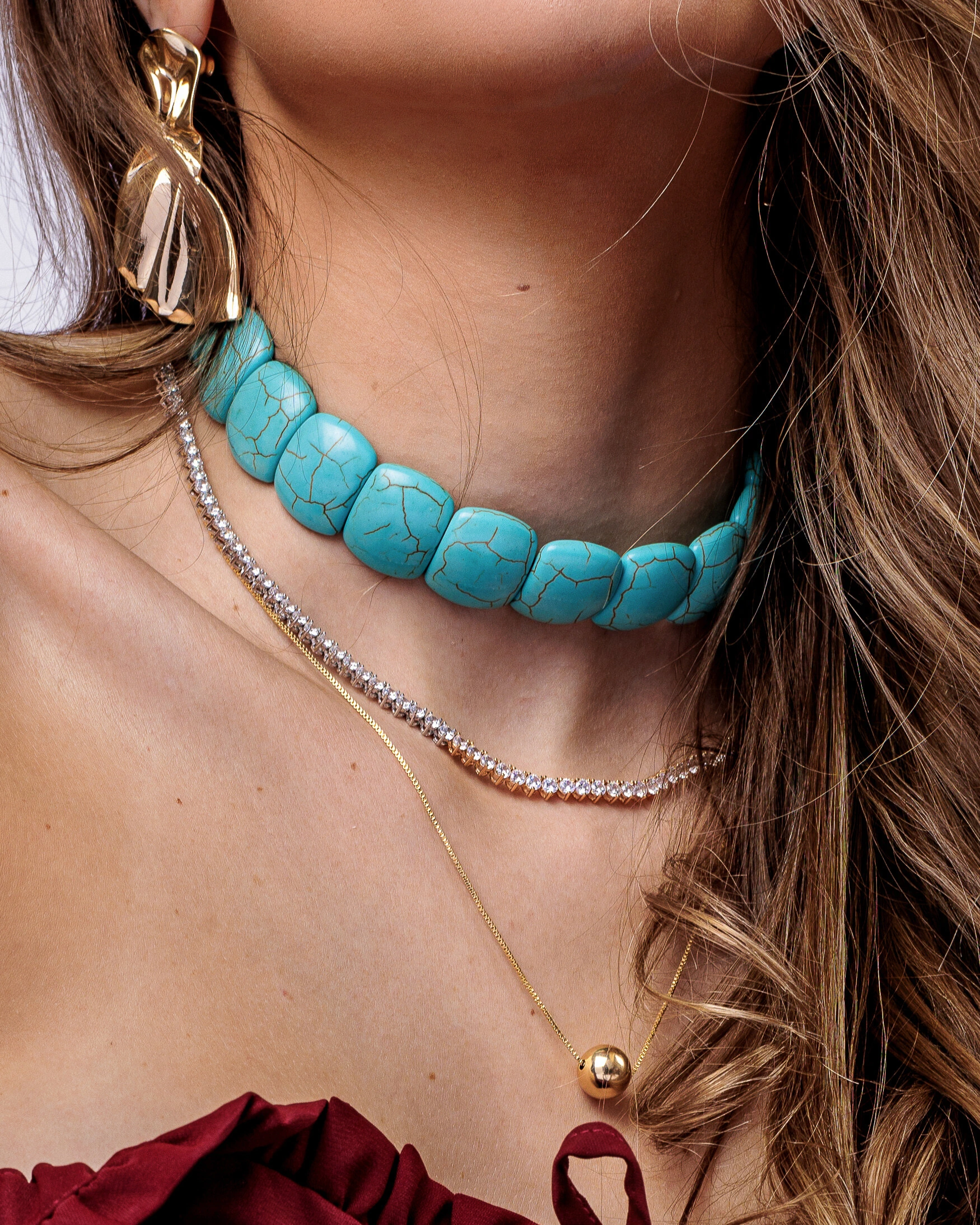 Colar delicado, em banho de ouro 18k, corrente veneziana com pingente de esferas.