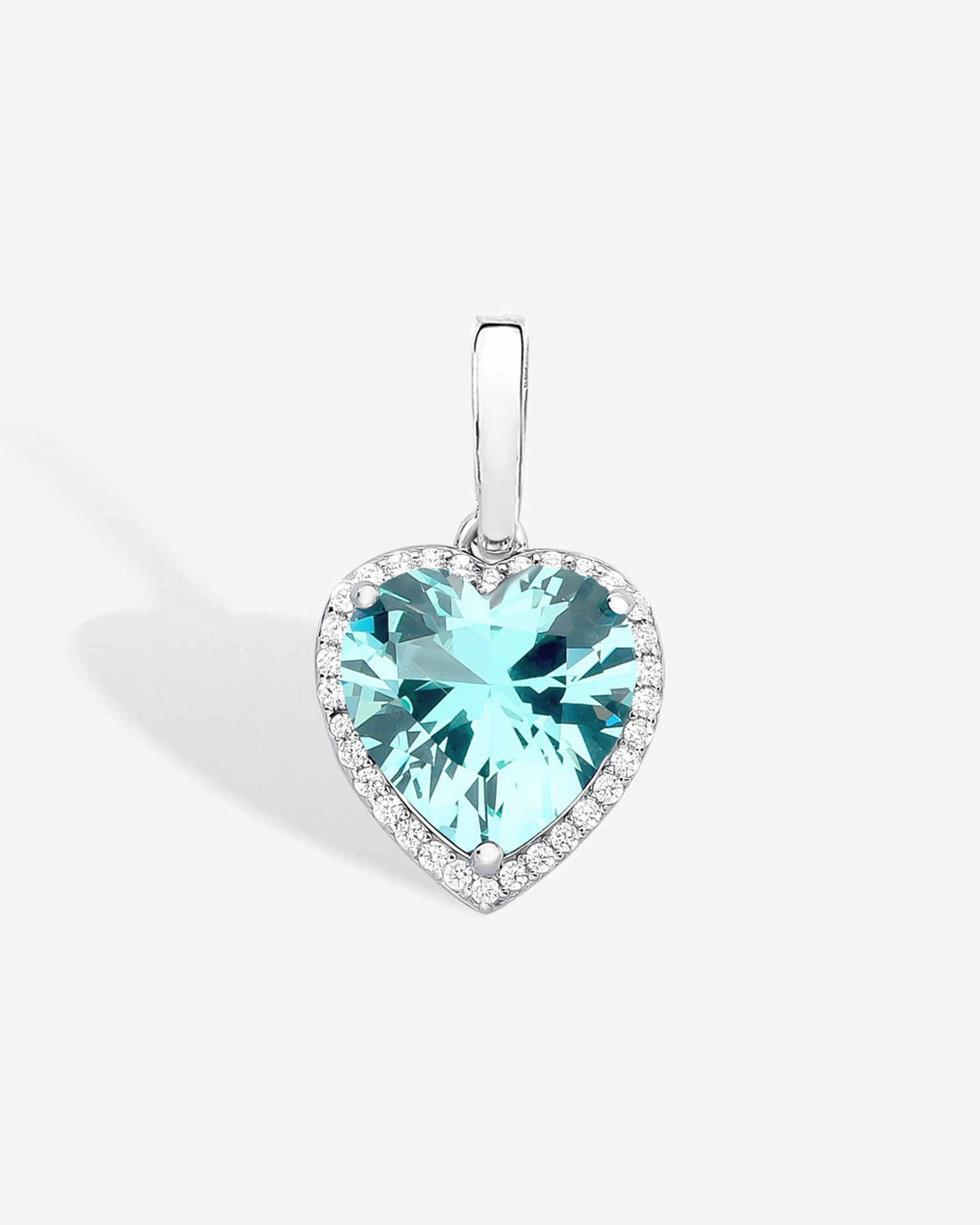 Pingente no formato de coração, contornado por uma delicada micro cravação em zircônias cristais.
