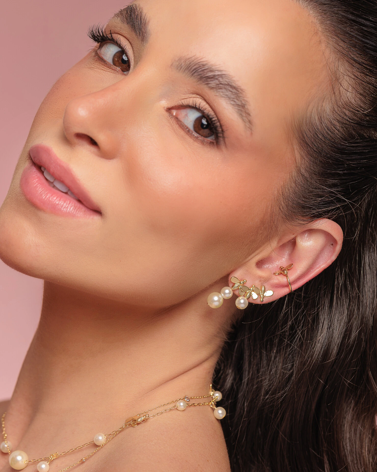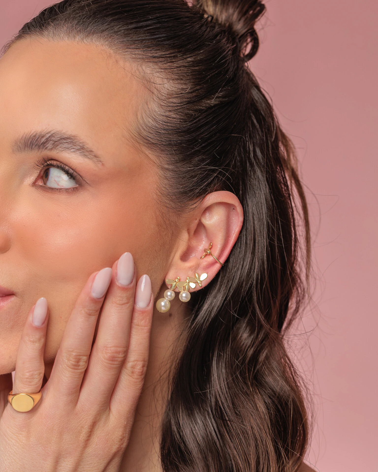Brinco Melissa é puro charme, seu design contemporâneo reproduz através de linhas suaves, a beleza e encanto da delicada abelhinha dourada.Em banho de ouro 18k. Perfeito para que ama acessórios delicados e cheios de personalidade.
