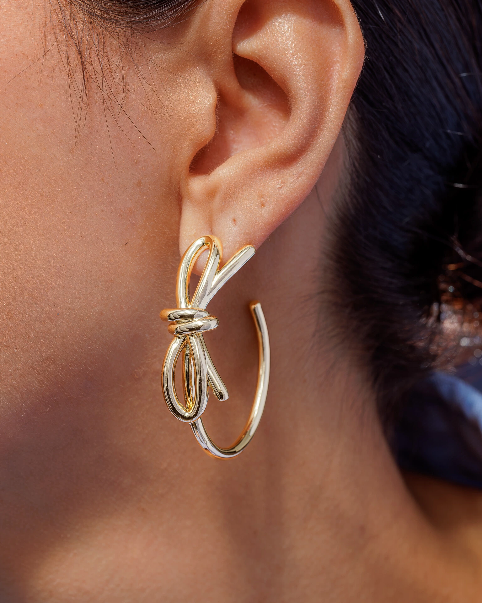 Argola Celine, um acessório encantador que transmite leveza e feminilidade no design de linhas contemporânes, em banho de ouro 18k, seu aro fino tubular é modelado para receber um grande laço na sua parte frontal. Seu formato volumoso encanta ao criar um visual atrativo e repleto de identidade.