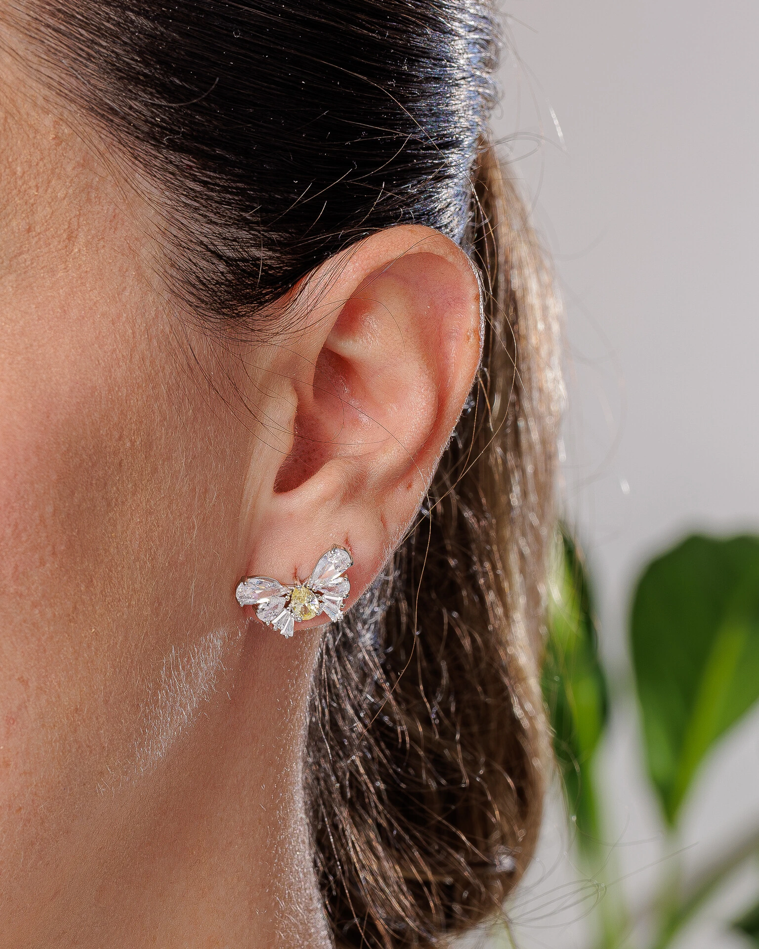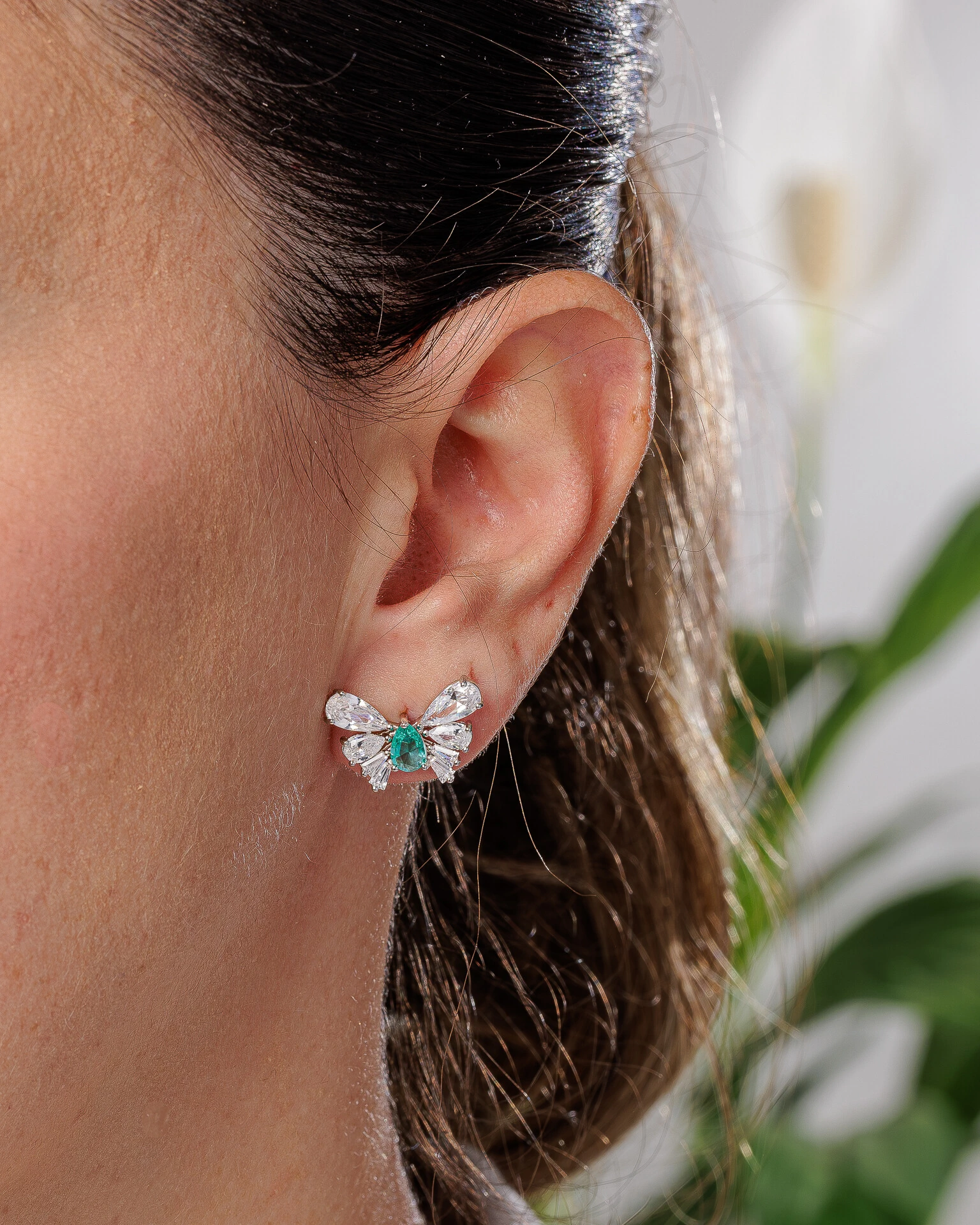 Brinco de borboleta com asas em pedras lapitadas com peça central em gota com diversas opções de cores, dando um ar de modernidade jovial a peça.