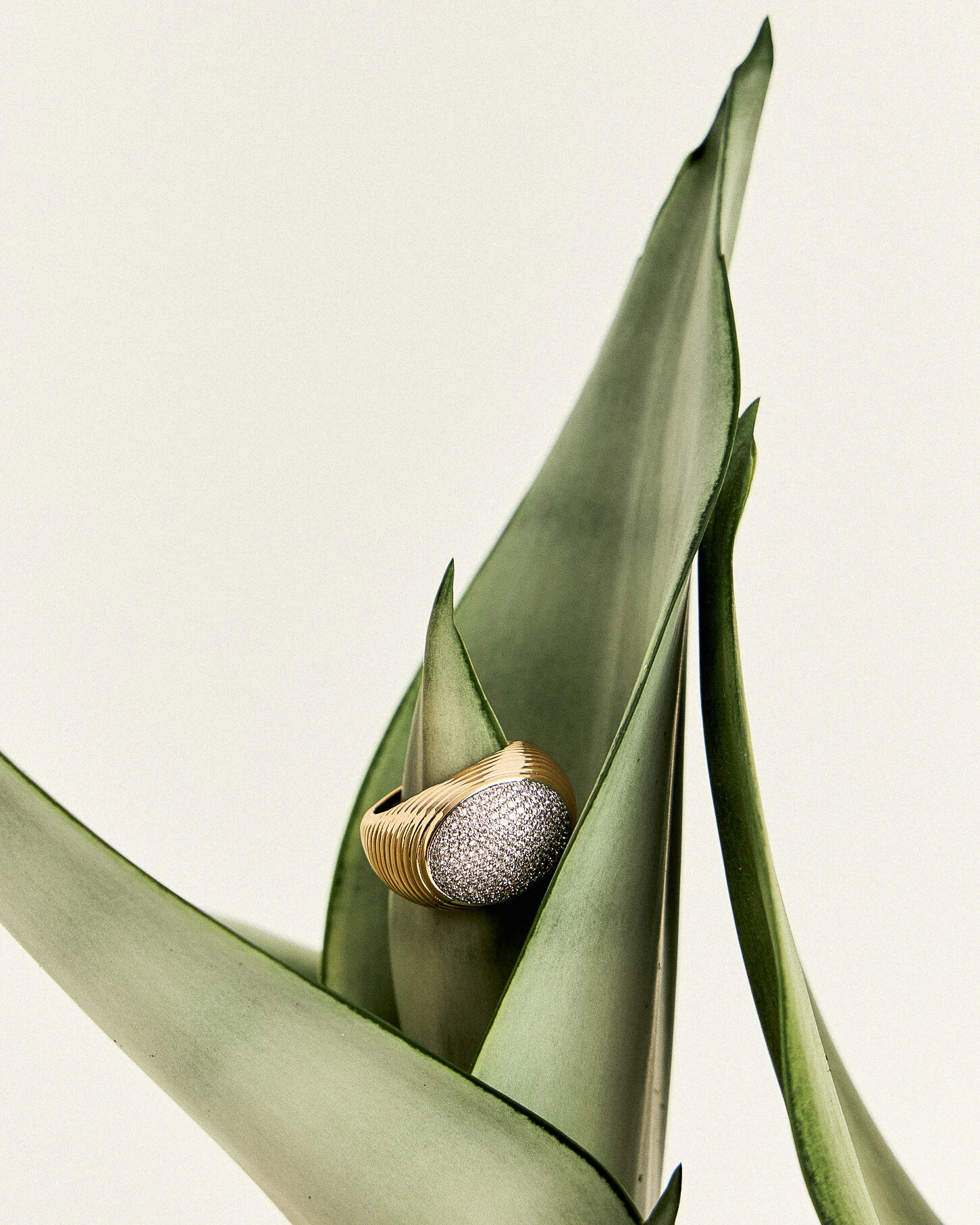 O inusitado design do Anel Laila, apresenta um aro levemente abaulado com frisos delicados e uma combinação dos banhos em Ouro 18k e Ródio, que criam volume e destacam a beleza da magnífica micro cravação em zircônias Cristais. Um toque de luxo que irá realçar e agregar sofisticação ao seu look.