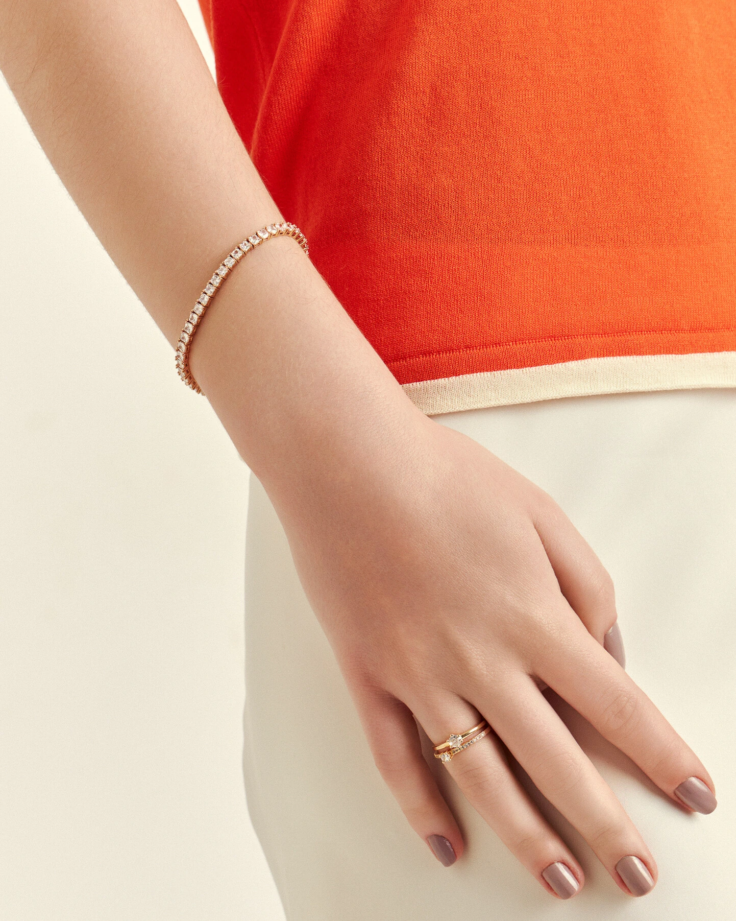 O refinado brilho de zircônias cristais na elegante lapidação Princess, recobrem toda a corrente da Pulseira Riviera Nati, criando um acessório luxuoso que fascina por sua perfeição. Possui fecho de gaveta com trava de segurança. Além disso, sua estrutura de trama rígida não a deixa virar, igual aos modelos de Riviera da alta joalheria. Possui fecho de gaveta com trava de segurança.