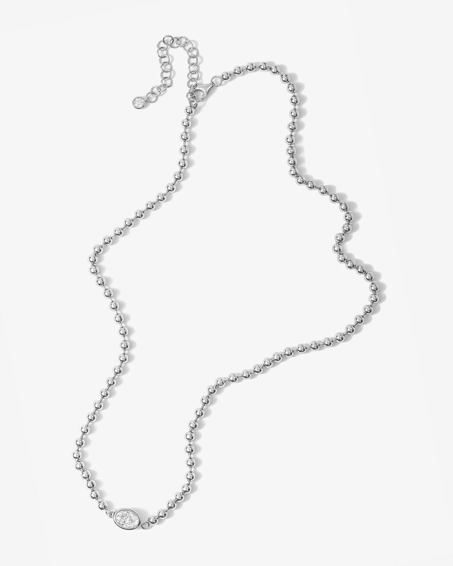 A clássica corrente de bolinhas, torna-se ainda mais refinada devido ao pingente Oval na elegante cravação Inglesa, que realça o glamour da Moissanite 8 mm x 10 mm, e seus reflexos intensos. Uma joia atemporal em prata 925, disponível nas variações de banho: em ouro 18k e ródio branco.